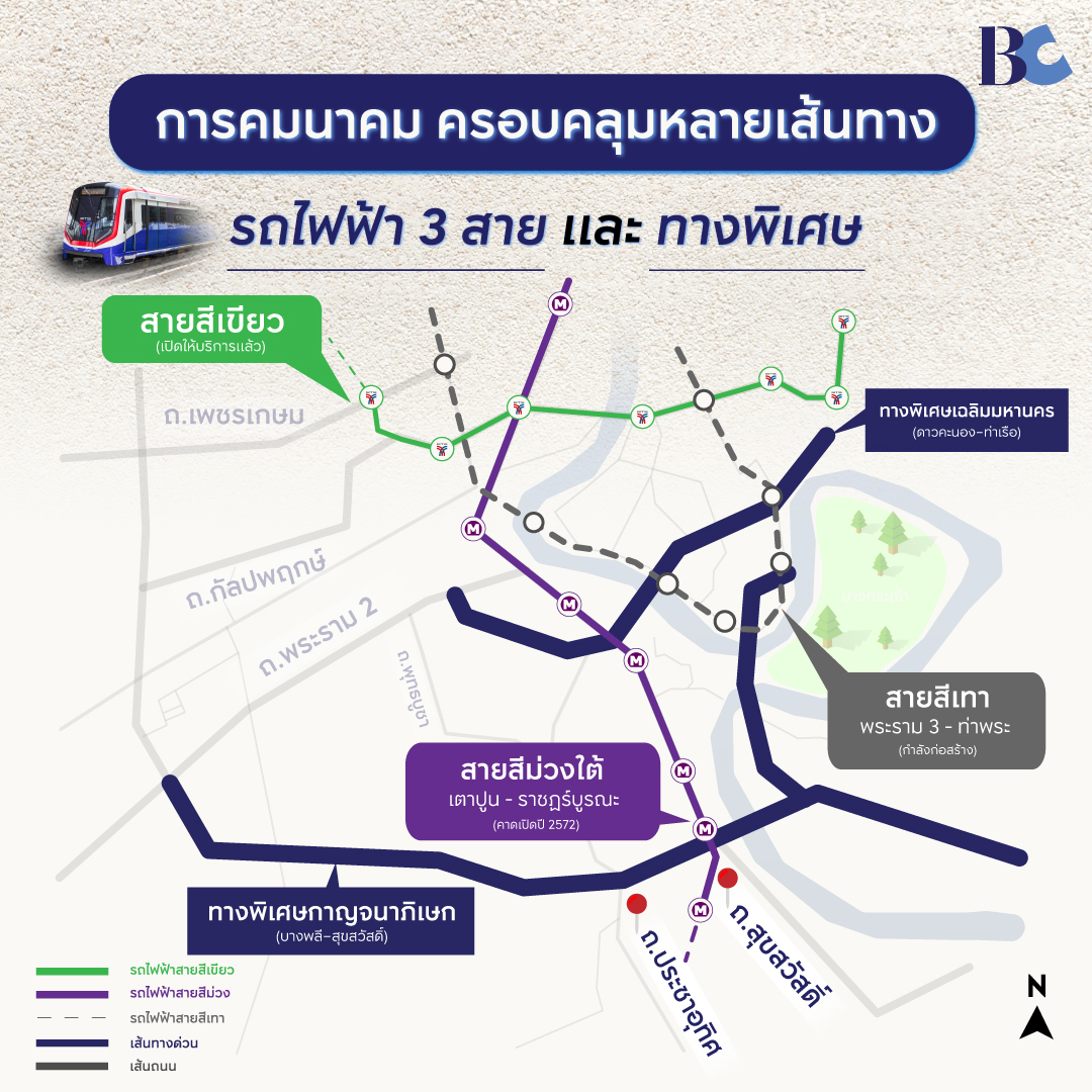 การคมนาคมสะดวกครบวงจร: ถนนหลัก, ทางพิเศษ, รถไฟฟ้าในอนาคต (สายสีม่วงใต้)