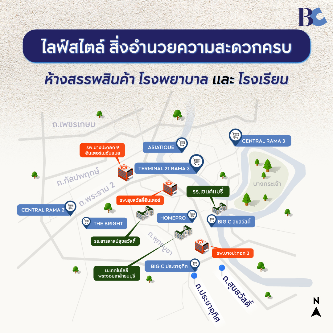 ย่านนี้ตอบโจทย์การอยู่อาศัยแบบครอบครัว ด้วยโรงพยาบาลคุณภาพหลายแห่ง เช่น