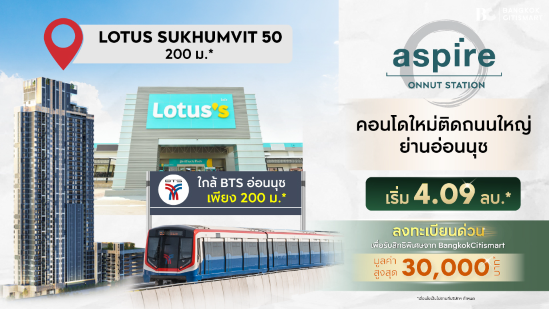 เริ่ม 𝟒.𝟎𝟗 ลบ.* ใกล้ BTS อ่อนนุช 200 ม.*
