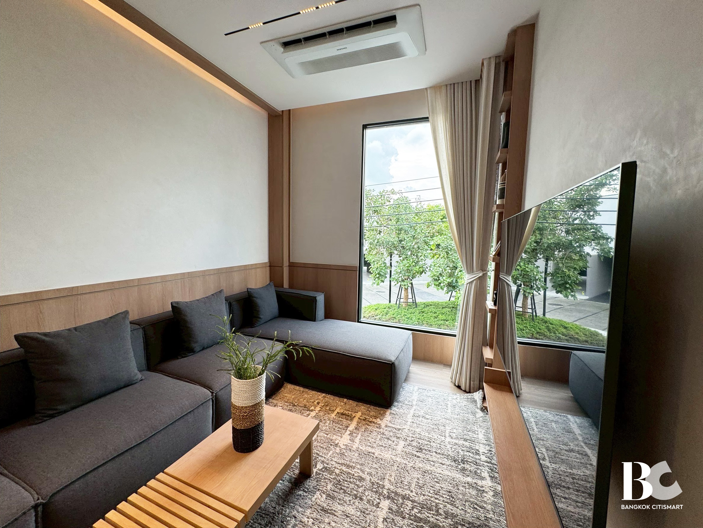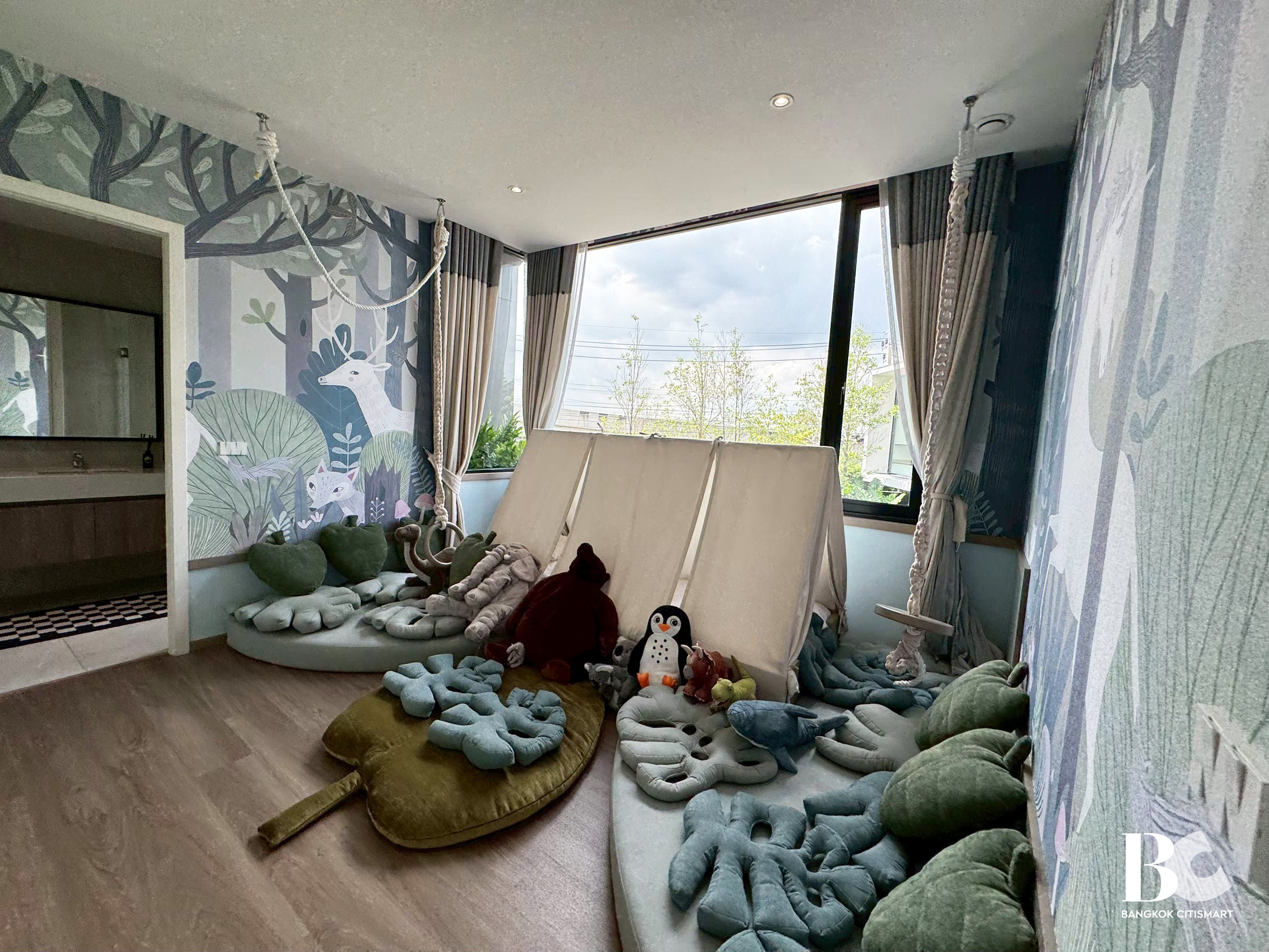 แม้สวนหลักไม่ใหญ่ แต่มีต้นไม้ตลอดแนวถนนและในทุกหลัง ทำให้บรรยากาศร่มรื่น Facilities ครบ โดยเฉพาะ Clubhouse สไตล์ Cozy พร้อมสระว่ายน้ำ สะดวกมาก