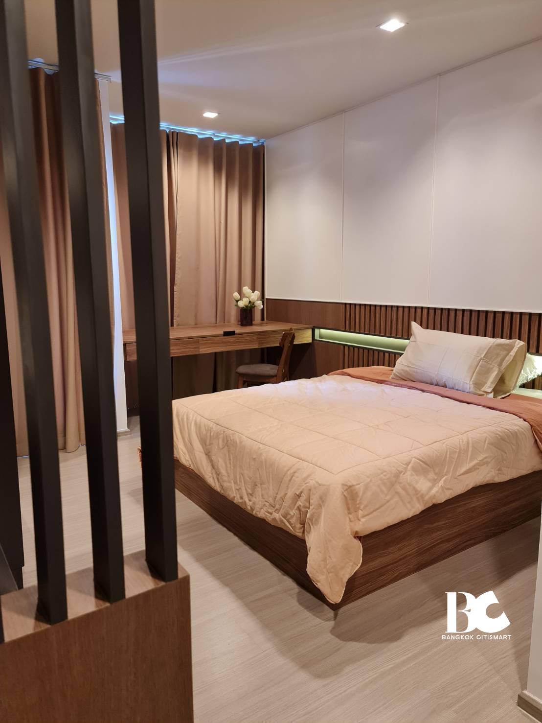 The greatest of high-rise living is now available in the heart of the New CBD, near MRT Rama 9, with a 7.5-rai * common area, three swimming pools, two floors of exercise on the rooftop floor, city views, a 6-meter-high Grand Lobby, and a private co-working space.